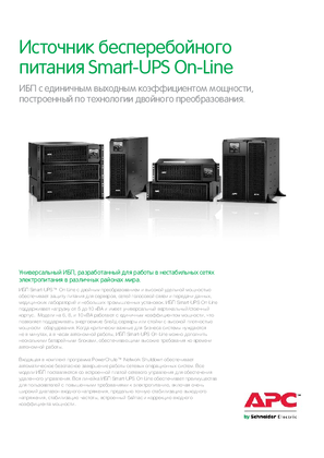 ИБП Smart-UPS On-Line SRT 2.2kVA - 10kVA от Schneider-ElectricИБП Smart-UPS™ On-Line с двойным преобразованием и высокой удельной мощностью обеспечивает защиту питания для серверов, сетей голосовой связи и передачи данных, медицинских лабораторий и небольших промышленных установок. ИБП Smart-UPS On-Line поддерживает нагрузку от 5 до 10 кВА и имеет универсальный вертикальный/стоечный корпус. Модели на 6, 8, и 10 кВА работают с единичным коэффициентом мощности, что позволяет поддерживать энергоемкие блейд-серверы или стойки с высокой плотностью мощности оборудования. Когда критически важные для бизнеса системы нуждаются не в минутах, а в часах автономной работы, ИБП Smart-UPS On-Line можно дополнить несколькими батарейными блоками, обеспечивающими высокие требования ко времени автономной работы. каталог > здесь