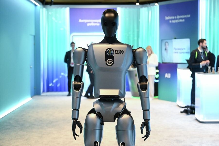 Сбер показал первого человекоподобного робота с физическим ИИ Он способен работать с предметами и понимать голос На международной конференции AI Journey Сбер представил своего первого антропоморфного робота Грина на базе нейросети ГигаЧат. Робот способен ориентироваться в незнакомом пространстве, автономно перемещаться и работать с предметами в реальном мире. Грин оснащён десятью сенсорами для обработки визуальной информации, инерциальными датчиками и датчиками силы, что обеспечивает равновесие и точность движений. Он умеет говорить и понимать голосовые команды, а также самостоятельно находить и исправлять ошибки при выполнении задач, например, сортировке и комплектовке объектов. источник - здесь
