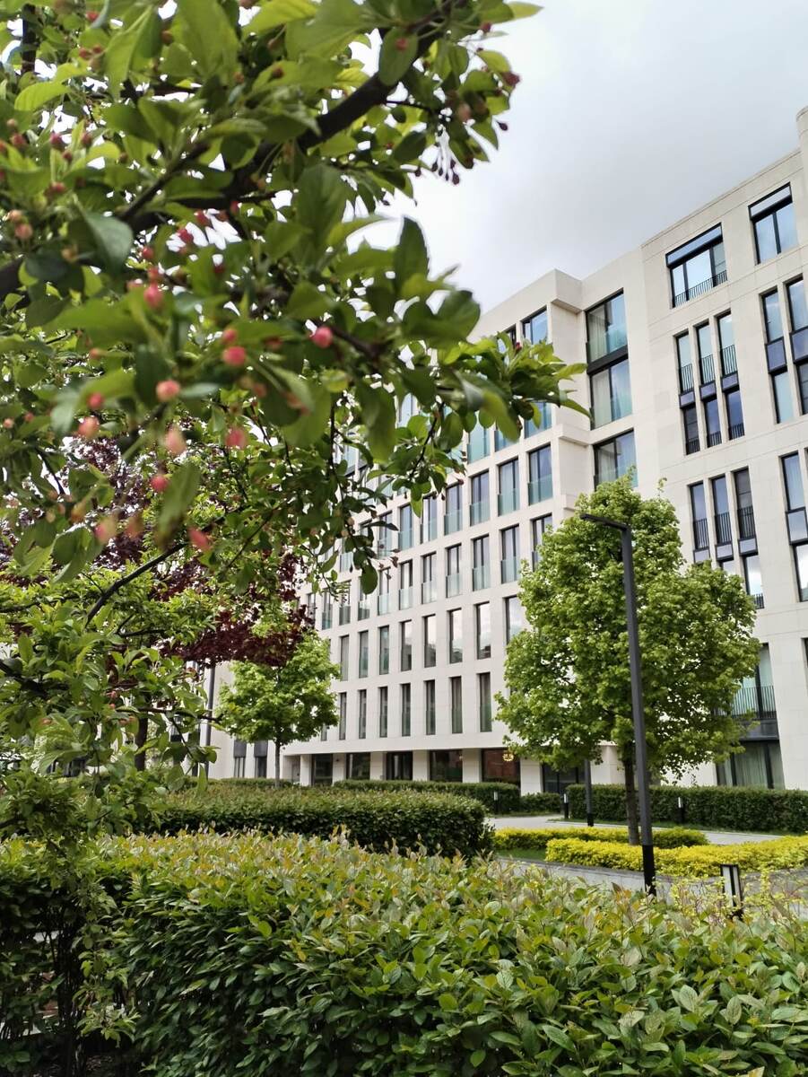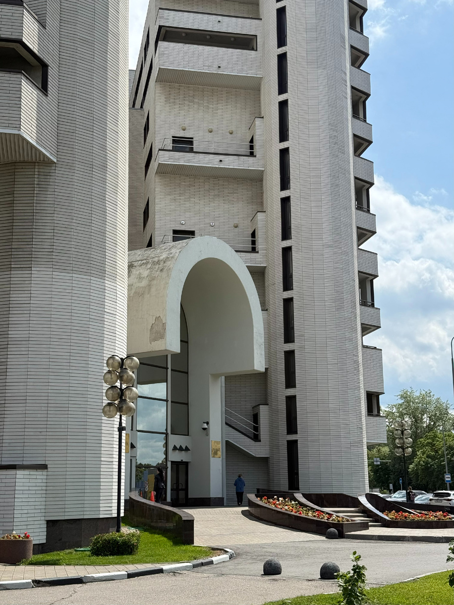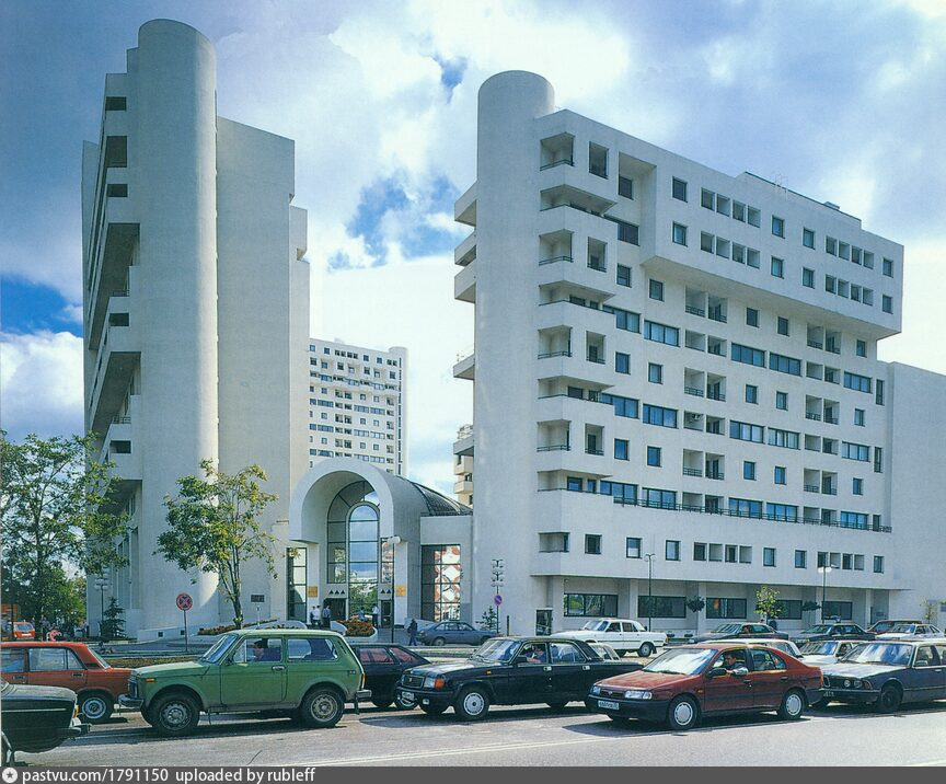 Прогулка по Москве: история ЖК «Парк Плейс Москоу» В 1988 году работники управления по обслуживанию дипломатического корпуса МИД СССР начали обсуждать строительство жилого комплекса для иностранцев, соответствующего западным стандартам, и был объявлен конкурс. Основной идеей была изоляция иностранцев от города, то есть сделать некий город в городе. Конкурс выиграл проект в стиле модернизм (архитектурный стиль числится в источниках как: модерн, конструктивизм, брутализм, модернизм, неомодерн) советского архитектора Якова Белопольского. За эту работу он получил Государственную премию в 1994 году. Реализацией проекта занималась турецкая строительная компания «Мир».  источник - здесь